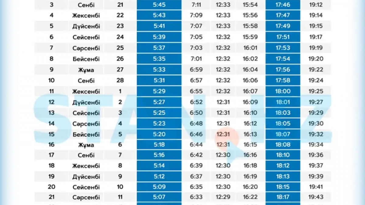 Астана бойынша 2026 жылғы Рамазан айының ораза кестесі жарияланды