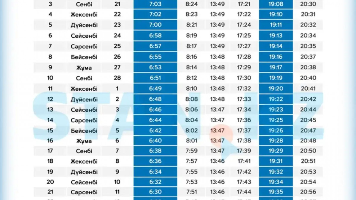Атырау қаласы бойынша 2026 жылғы Рамазан айының ораза кестесі жарияланды
