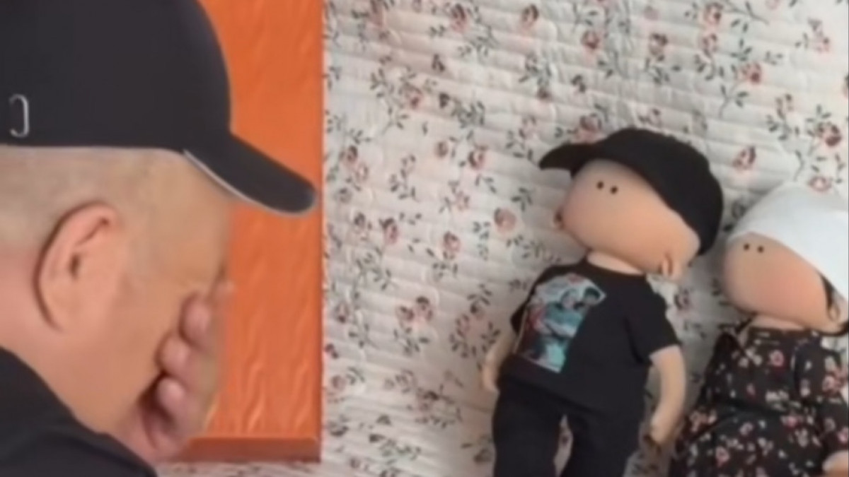 Кадрларда ер адам алдымен өзіне ұқсатып жасалған жұмсақ ойыншықты қолына алып, күлімсіреп қарайды. Тіпті басындағы кепкасына дейін дәл келетінін айтып, әзілдейді. Алайда келесі сәтте екінші ойыншықты көргенде оның көңіл-күйі күрт өзгереді.